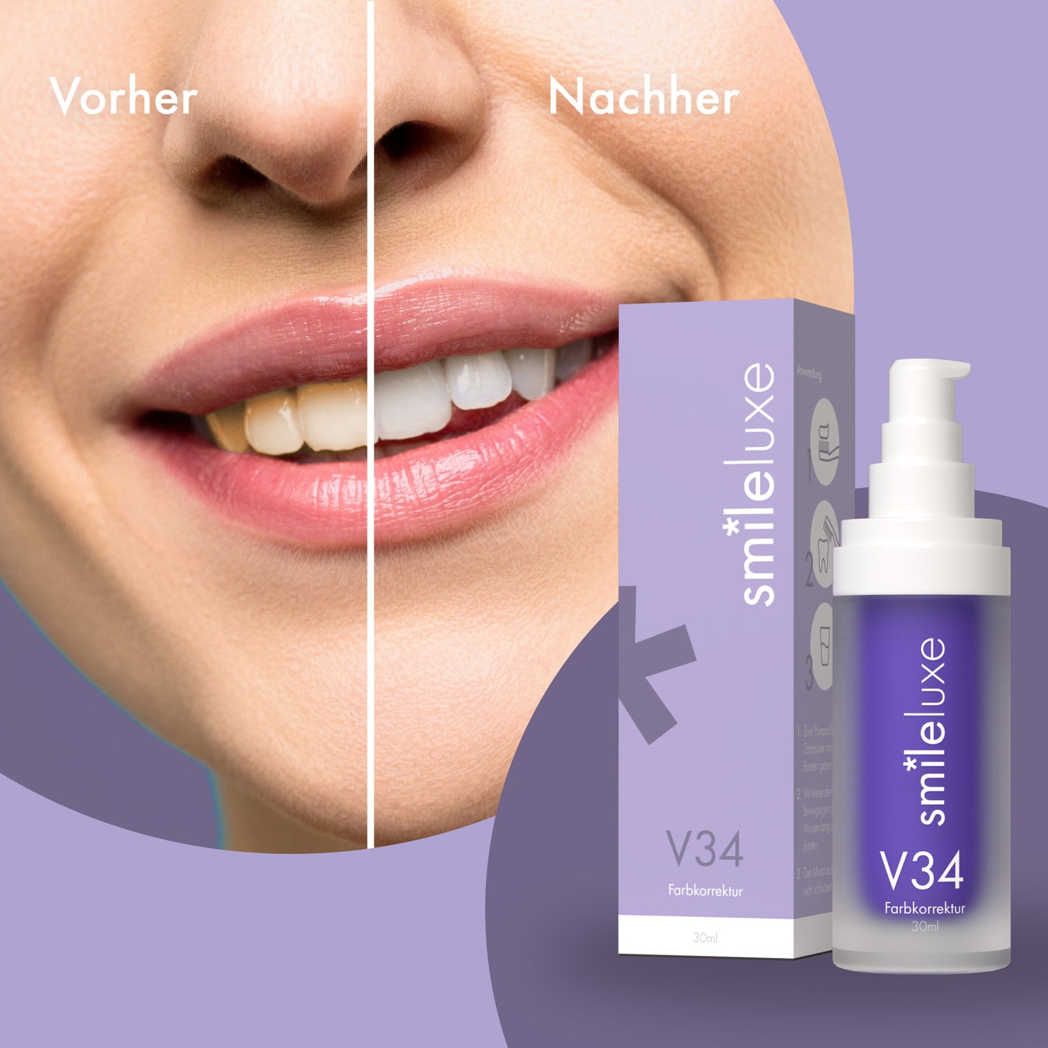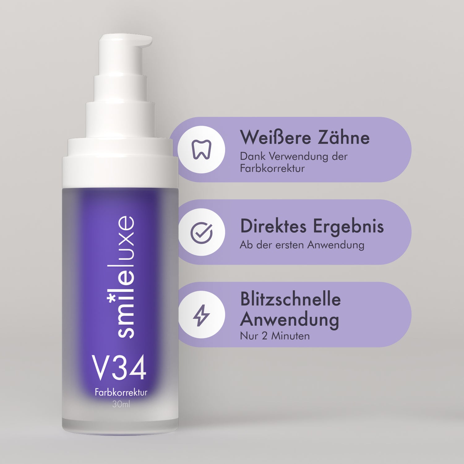 Unser Serum hellt deine Zähne auf, indem es eine Technologie zur Farbkorrektur einsetzt. Es gleicht die verschiedenen Farbtöne deiner Zähne aus, kaschiert Verfärbungen und verbessert die Helligkeit.